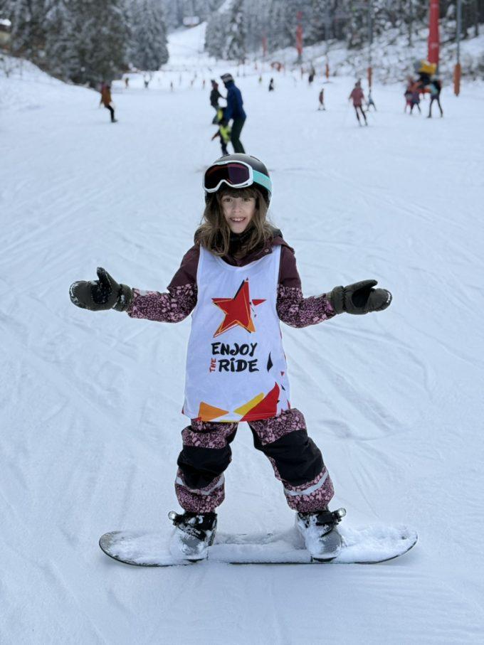 La copii, snowboardul ajută enorm la dezvoltarea echilibrului, coordonării și încrederii în sine.
